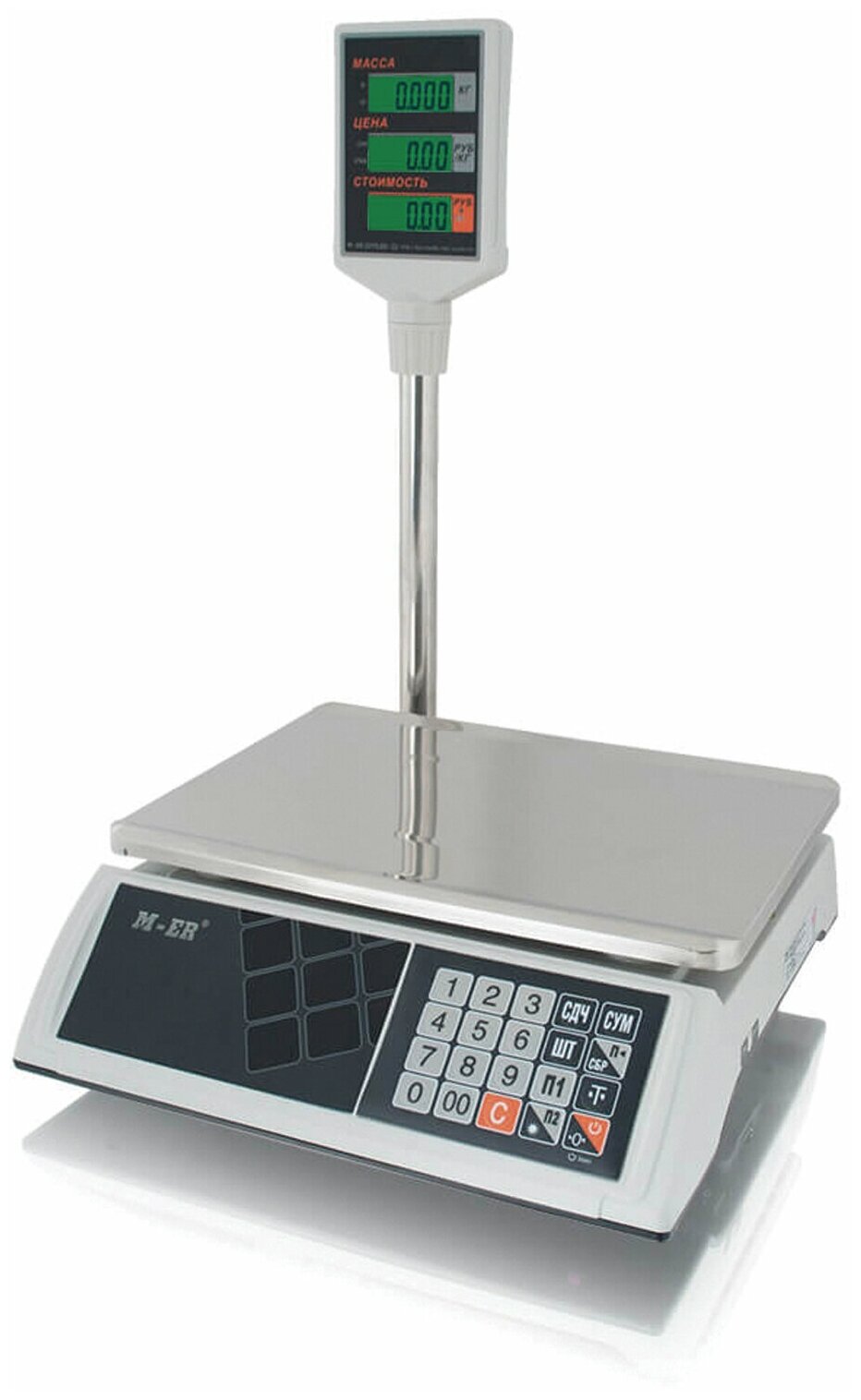 Весы торговые MERTECH M-ER 327P-15.2 LCD (0,05-15 кг), дискретность 2 г, платформа 325×230 мм, со стойкой