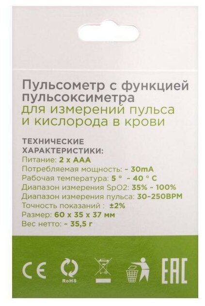 СохранитьПульсометр с функцией пульсоксиметра "Energenie" EG-PO1W, белый с зеленым интересное: