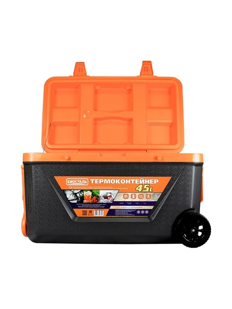 Термоконтейнер на колёсах биосталь CB-45G-K 45 л, серый/оранжевый