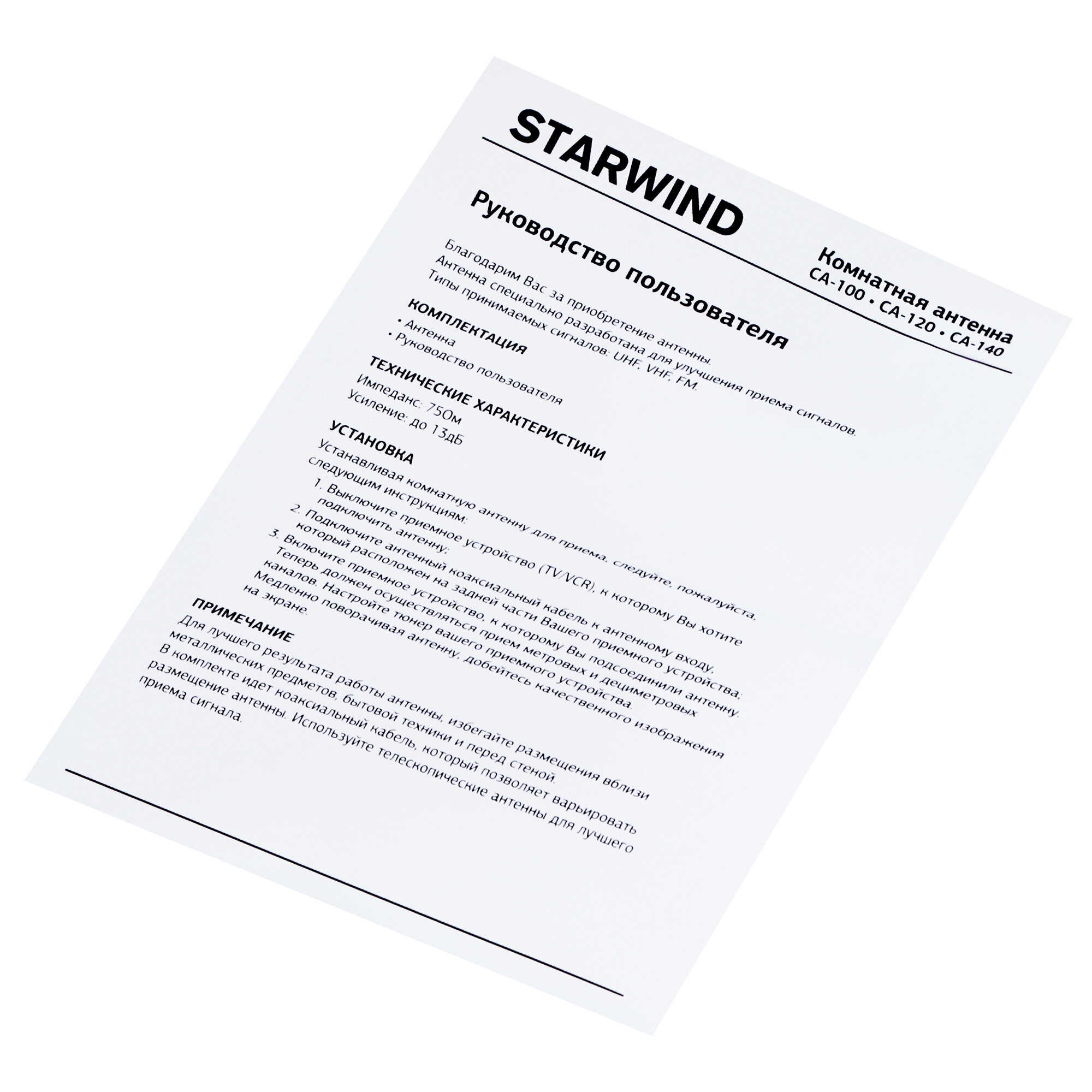 Телевизионная антенна STARWIND CA-100