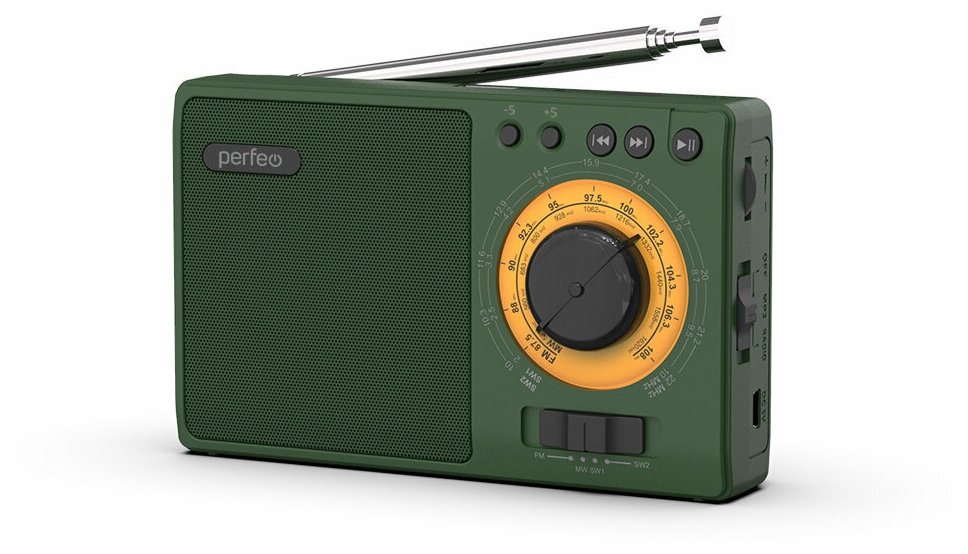 Купить PERFEO мини-аудио заря, FM/СВ/КВ1/КВ2, MP3, USB, TF, AUX, 3 ВТ, зелёный