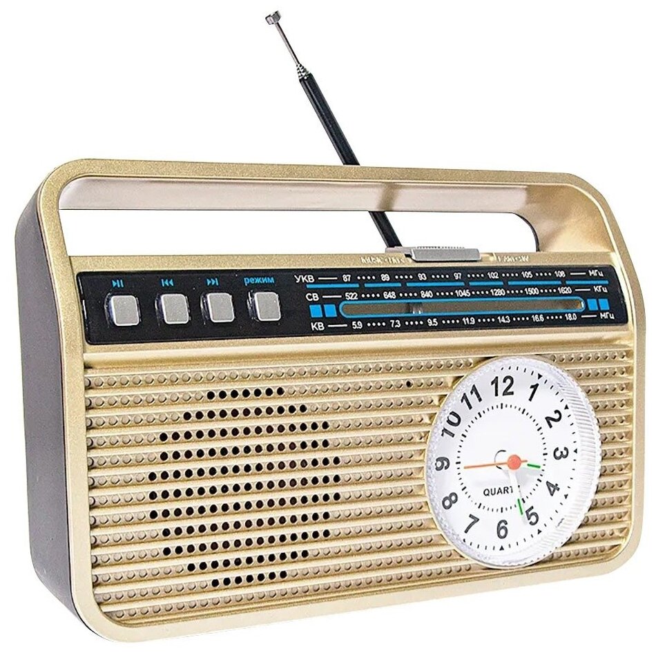 Приемники Сигнал Радиоприемник "БЗРП РП-332", УКВ 87-108МГц,акб 1200mA/h,USB/microSD/AUX/BT,механич.часы,6мм шайба