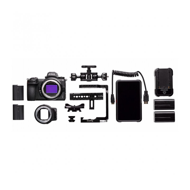 | Комплектация | aотокамера Nikon Z6, защитная крышка BF-N1, резиновый наглазник DK-29 (поставляется прикрепленным к фотокамере), зарядное устройство для батареи MH-25a, ремень AN-DC19, зажим кабеля HDMI/USB, кабель USB UC-E24, крышка башмака для принадлежностей BS-1, переходник байонета FTZ, рекордер Atomos Ninja V, крепление SmallRig, две аккумуляторные батареи EN-EL15b, витой кабель HDMI, две аккумуляторные батареи для рекордера 5200 мАч, верхняя рукоятка SmallRig для крепления фотокамеры, кронштейн SmallRig Magic Arm |