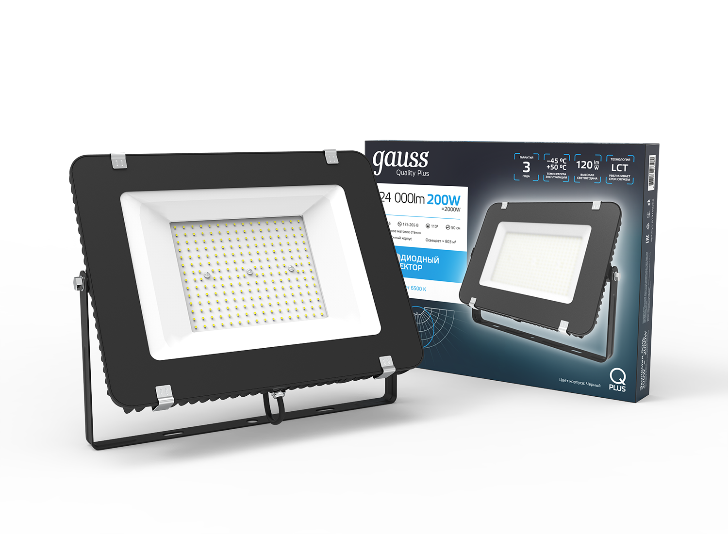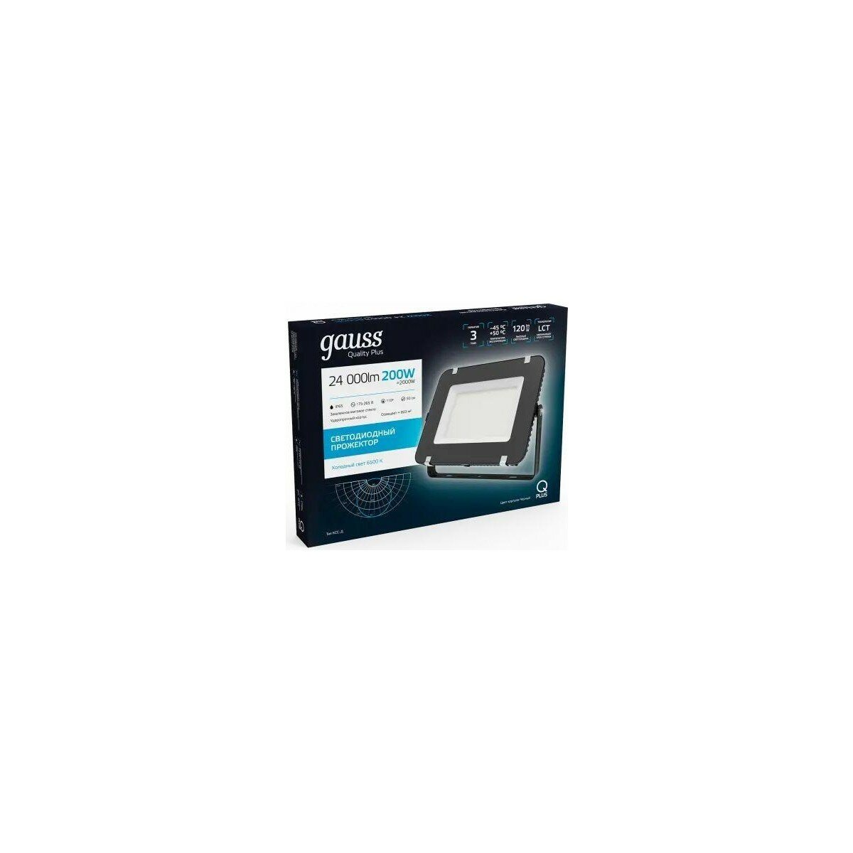 Прожектор GAUSS Qplus 200w 24000lm 6500k 175-265v ip65 черный led интересное: