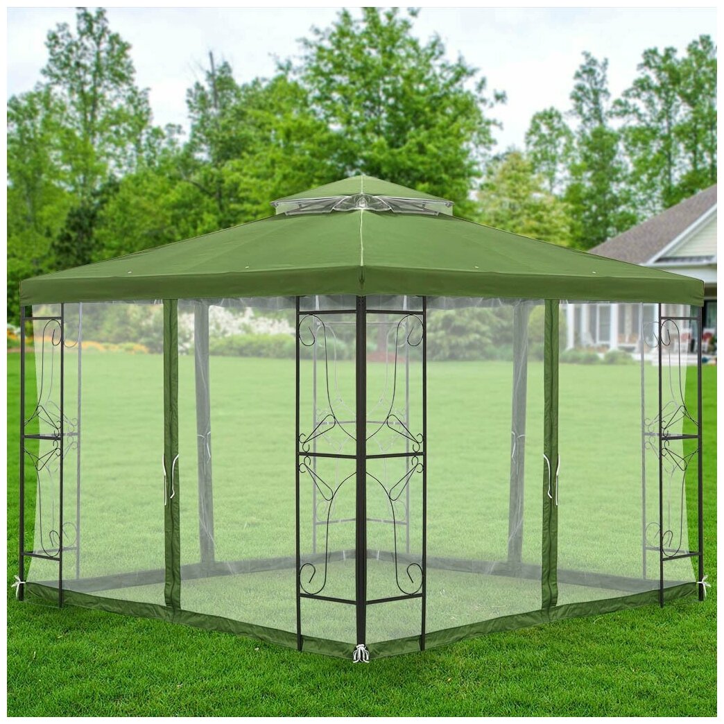 Шатер с москитной сеткой, зеленый, 3х3х2.65 м, с двойной крышей, Green Days интересное: