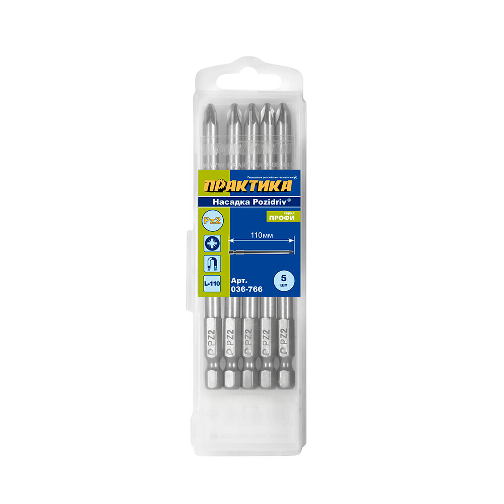 Бита "Профи" PZ-2 х 110мм (5шт), кассета ПРАКТИКА 036-766
