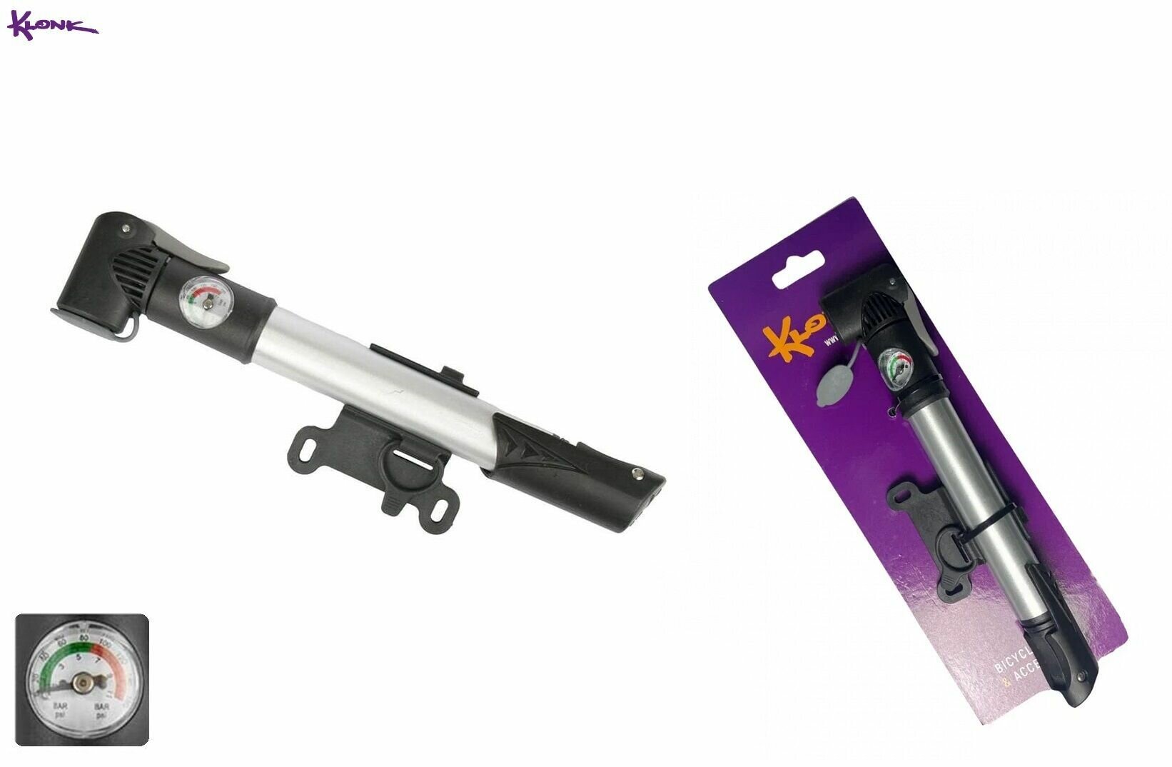 Насос велосипедный Klonk 10714, алюминиевый, телескопический, универсальный AV/PV/DV, с манометром