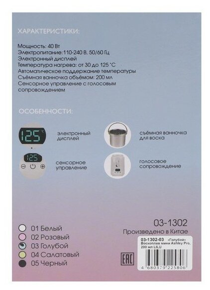 Воскоплав мини ASHLEY PRO, 200 МЛ LILU, голубой