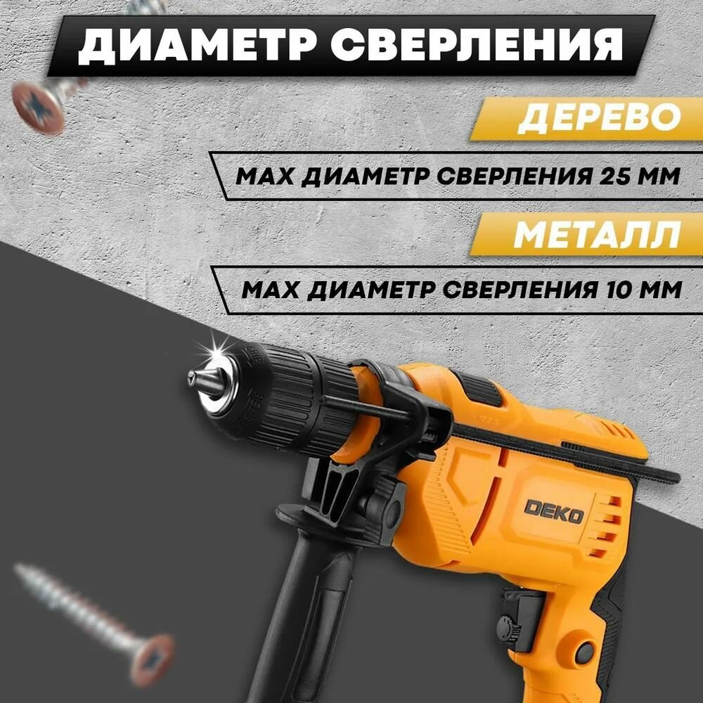 Дрель ударная сетевая DEKO DKID600W в кейсе с быстрозажимным патроном, 600 Вт, 50 Нм, 3000 об/мин, 4