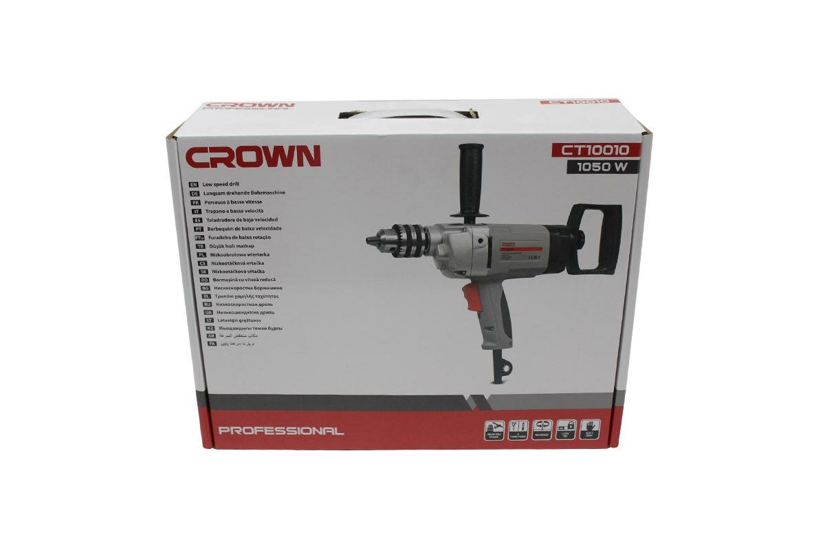 Дрель безударная CROWN CT10010 (1050Вт, патрон 16мм, 550об/мин, 3,2кг, коробка) professional