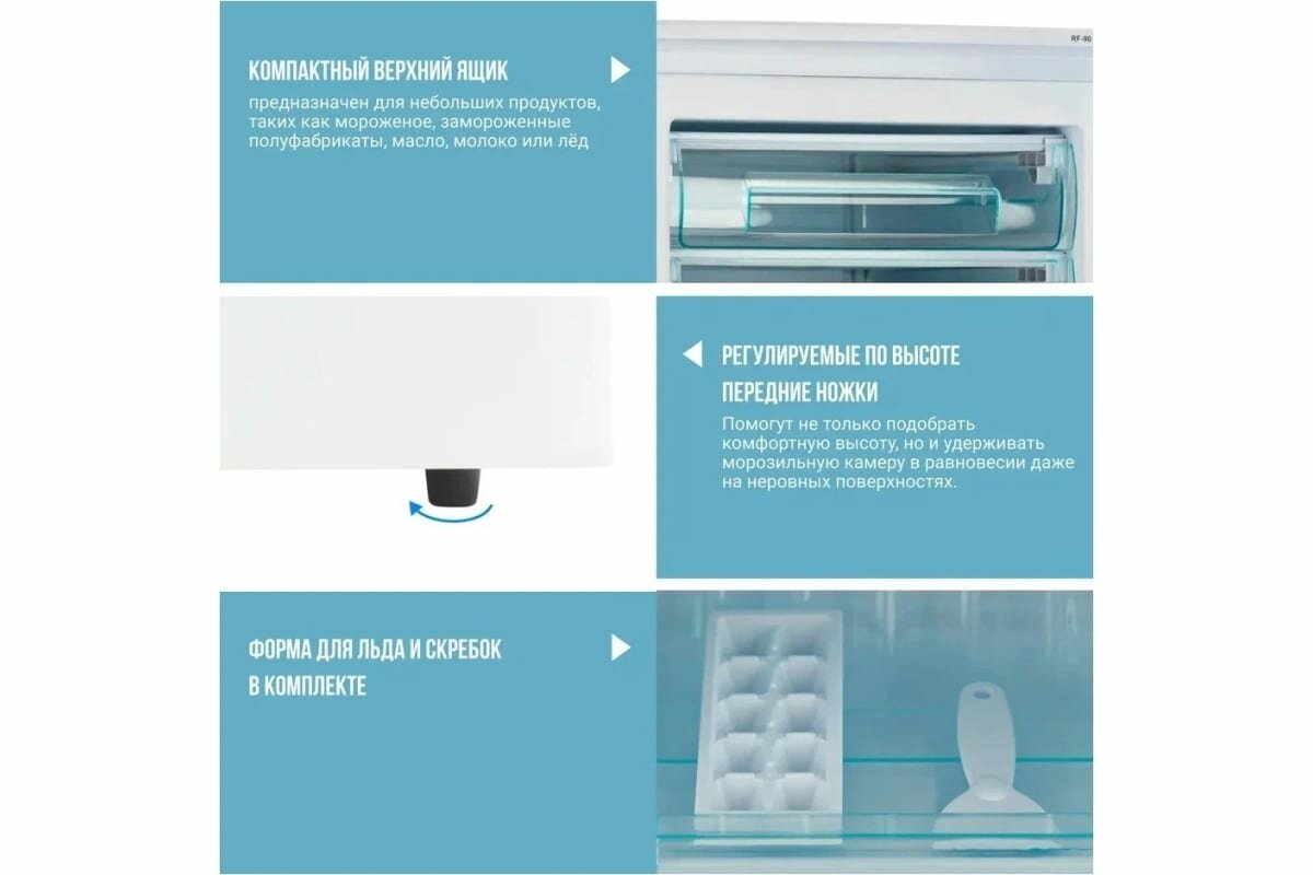 | Дополнительная информация | входная мощность 87 Вт; скребок для льда; форма для льда; утопленная ручка; регулируемые по высоте ножки |