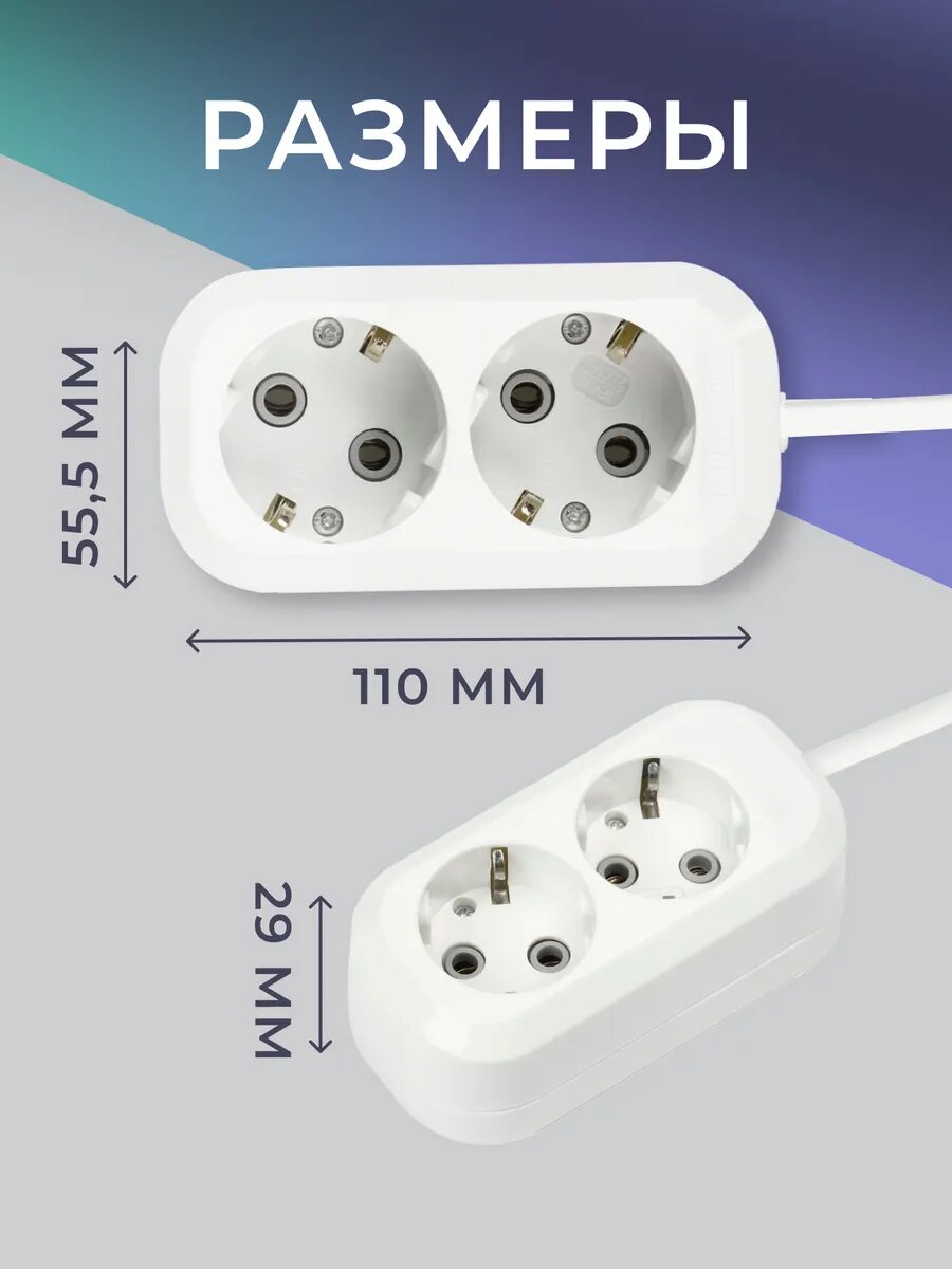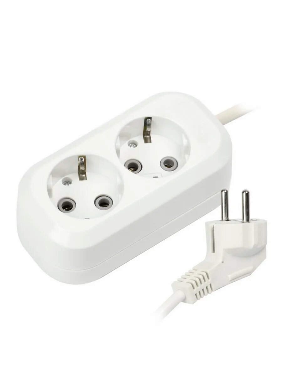 Удлинитель 2 розетки, 1.7 м, 6 А, ПВС 2х0.75 мм2, без з/к, белый
