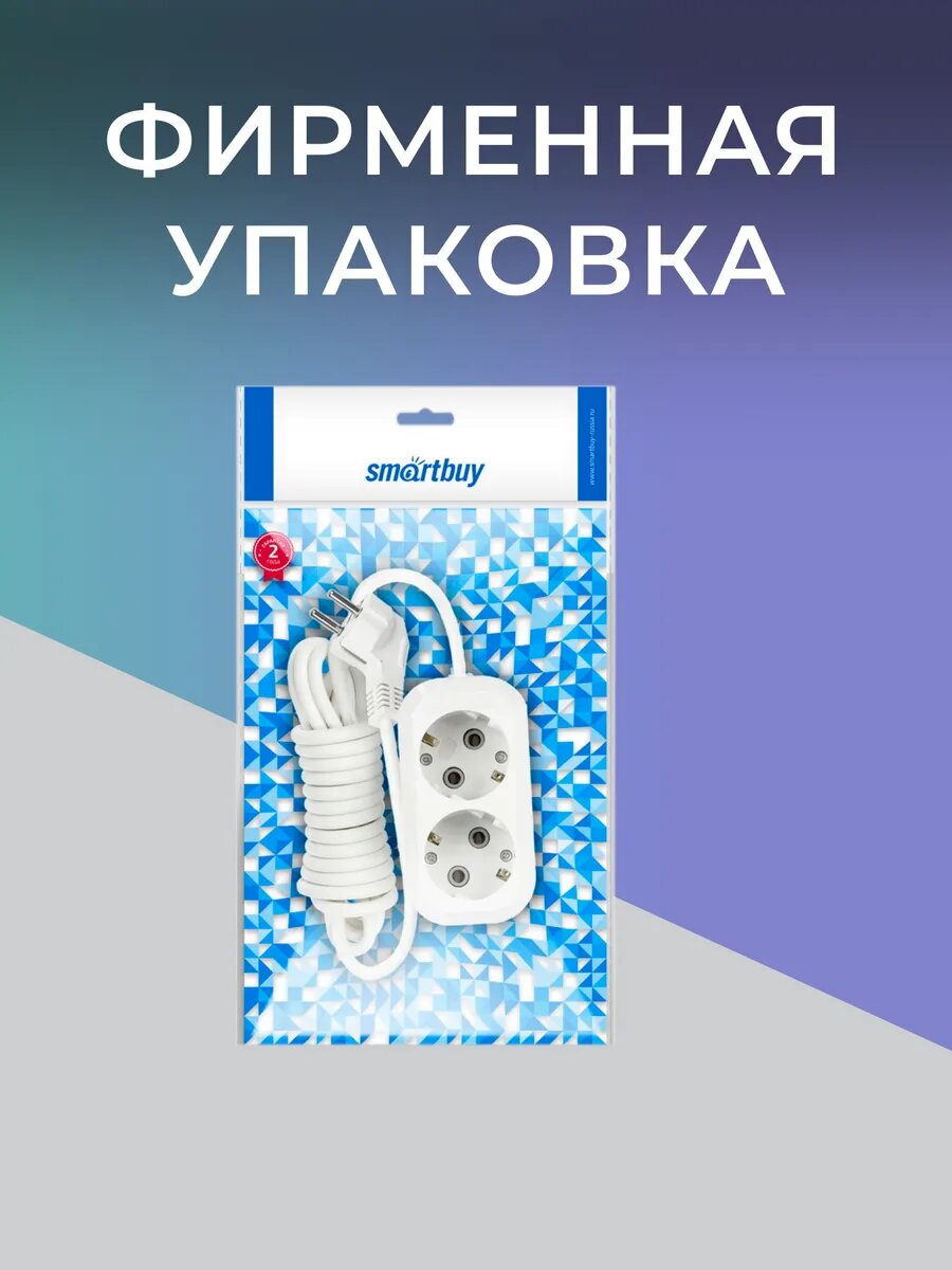 Удлинитель SmartBuy SBE-10-3-02-N/SBE-10-3-03-N/SBE-10-3-05-N, 3 розетки, б/з, 10А / 2200 Вт белый 2 м 3