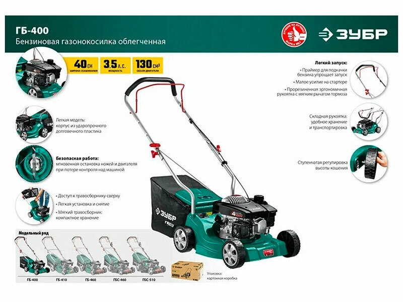 Ниже Вы можете прочитать отзывы на Бензиновая газонокосилка ЗУБР 400 мм, 2.5 л.с. ГБ-400, ознакомится с подробными характеристиками, посмотреть интересные обзоры и фотографии на Бензиновая газонокосилка ЗУБР 400 мм, 2.5 л.с. ГБ-400.
