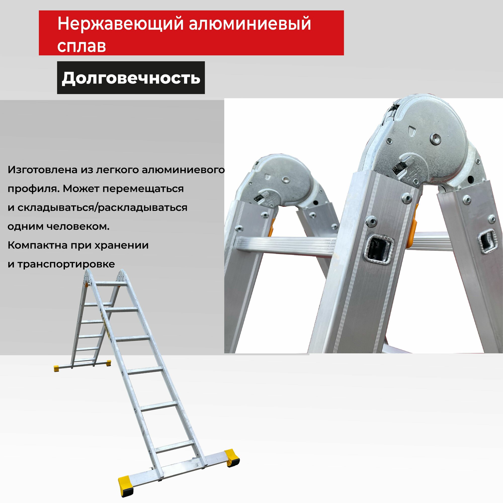 Новая высота Лестница-трансформер 3-х секционная 3×7 ступеней, 3×1,9 м, высота 4,5 м, нагрузка 150 кг, алюминий, новая высота