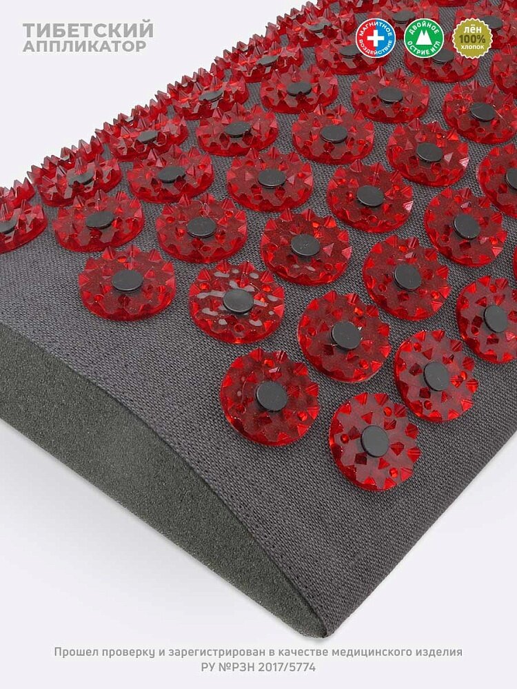 Массажный валик Лаборатория Кузнецова Тибетский аппликатор (аппликатор Кузнецова) для поясницы, магнитные вставки, чёрный лён, красный интересное: