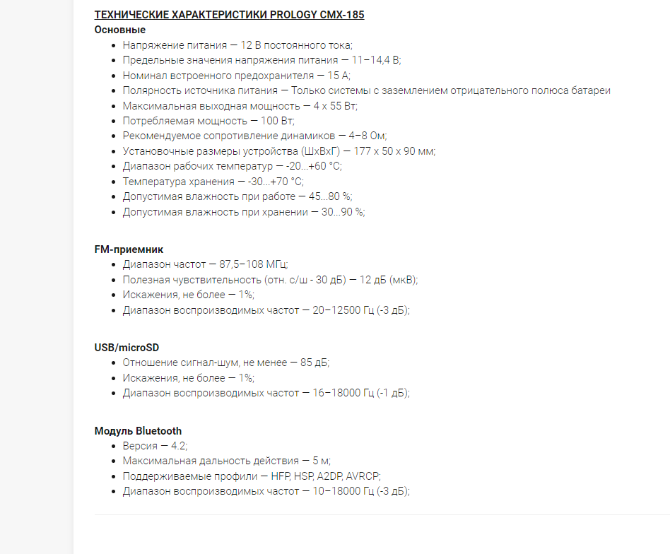 Автомагнитола PROLOGY CMX-185 интересное: