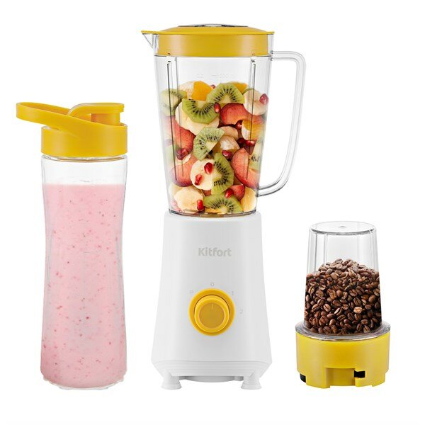 Блендер стационарный Kitfort Shake & Take 3 в 1 KT-3055-2 бело-желтый