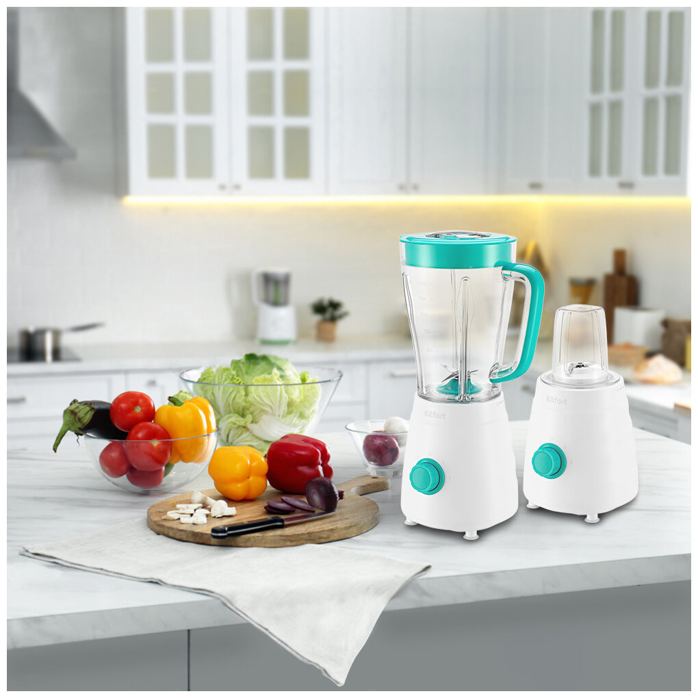 Блендер стационарный Kitfort КТ-3054-3 500Вт белый/бирюзовый КТ-3054-3 .