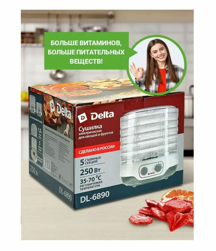 Ниже Вы можете прочитать отзывы на Delta Сушилка для овощей и фруктов DELTA DL-6890, 250 Вт, 5 ярусов, ознакомится с подробными характеристиками, посмотреть интересные обзоры и фотографии на Delta Сушилка для овощей и фруктов DELTA DL-6890, 250 Вт, 5 ярусов.