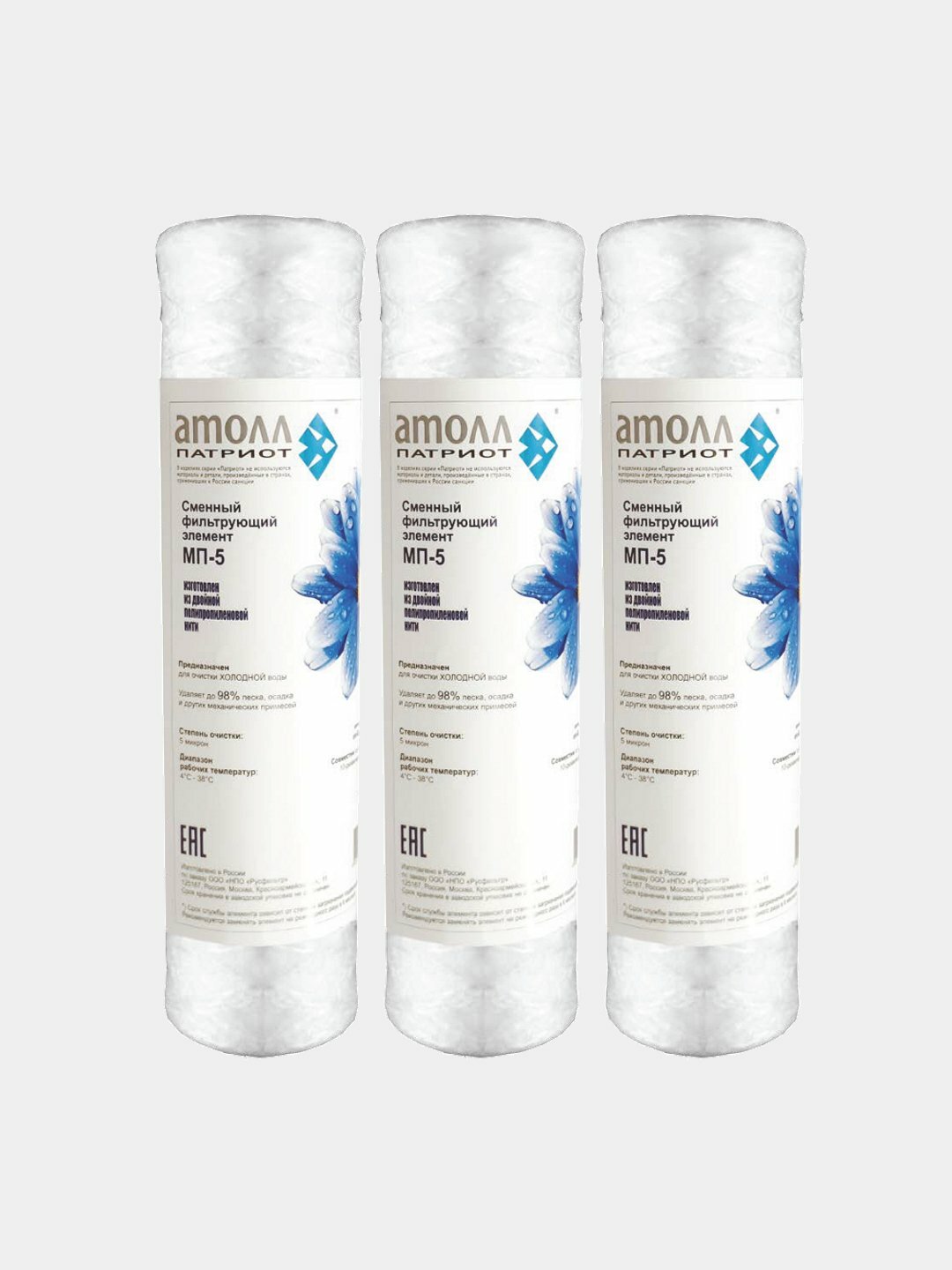 Купить Картридж атолл Патриот МП-5 (намотка, полипропилен) — 3 штуки