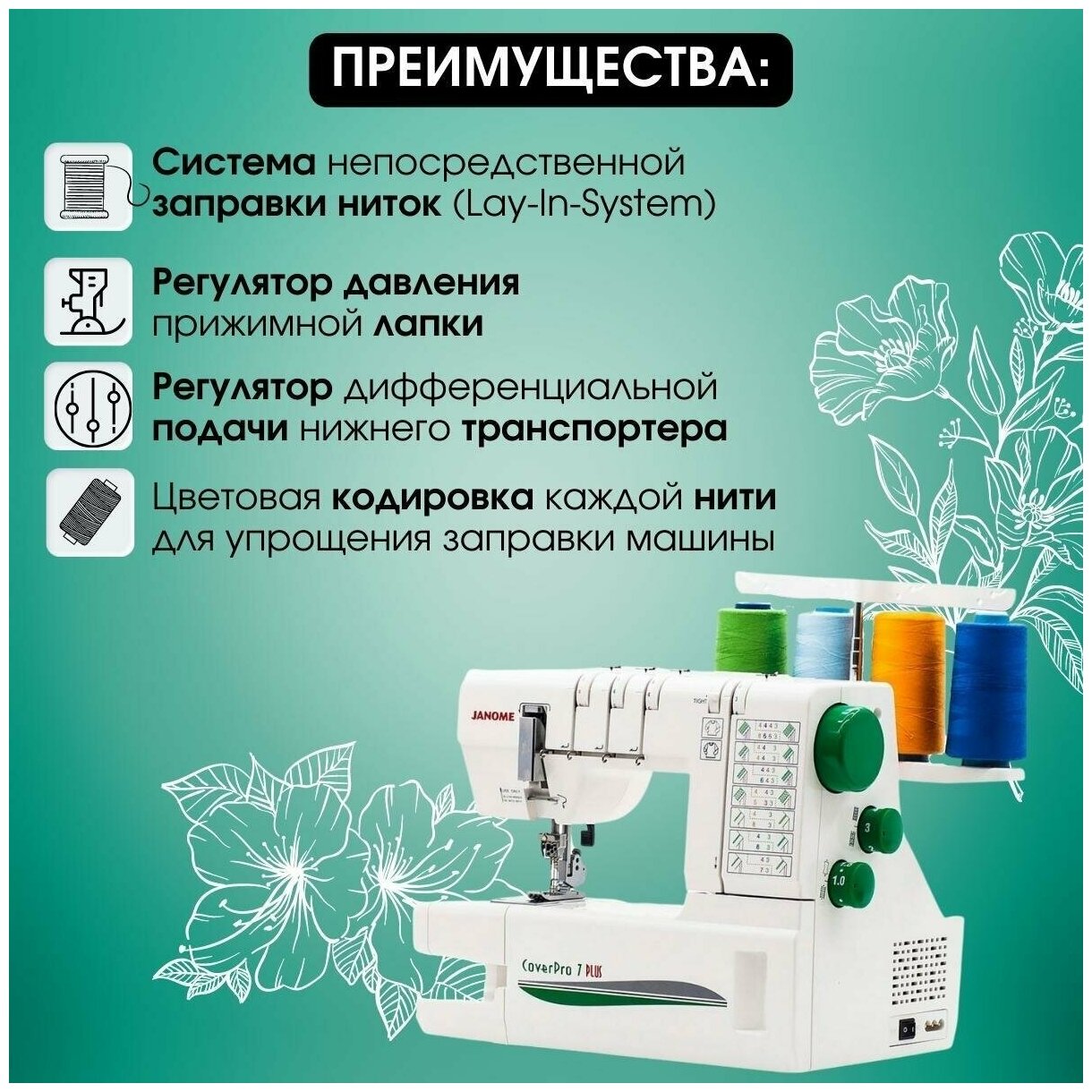 Распошивальная машина Janome Cover Pro 7 Plus интересное: