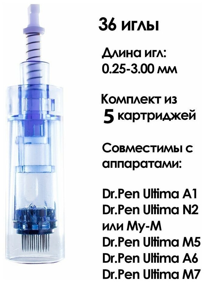 Картридж (модуль) для дермапен на 36 игл, насадка на dermapen My-M/А1/N2/M5/А6/М7, длинный синий, 10 шт" интересное: