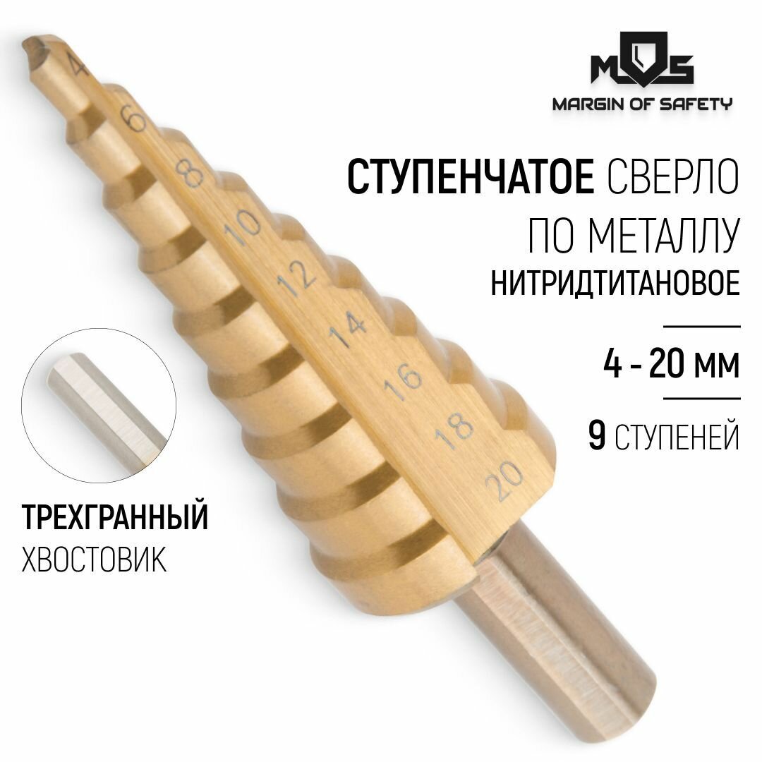 Сверло ступенчатое конусное по металлу HSS TiN покрытие MOS 36382М 4-6-8-10-12-14-16-18-20 мм