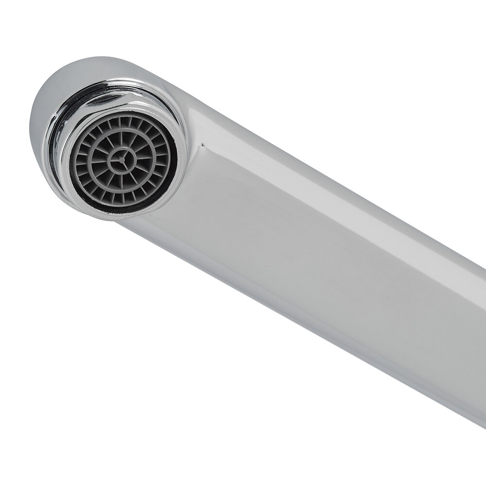 | Плюсы: | Надёжный смеситель, стильный. |