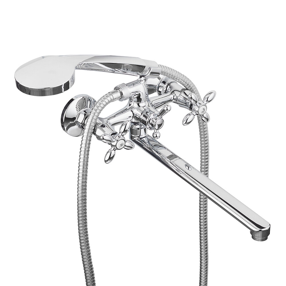 Смеситель для ванны Decoroom DR53 хром двухвентильный с длинным изливом с лейкой (DR53043)