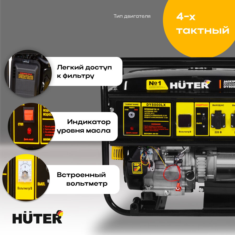 Генератор бензиновый Huter DY8000LX, 6500 Вт