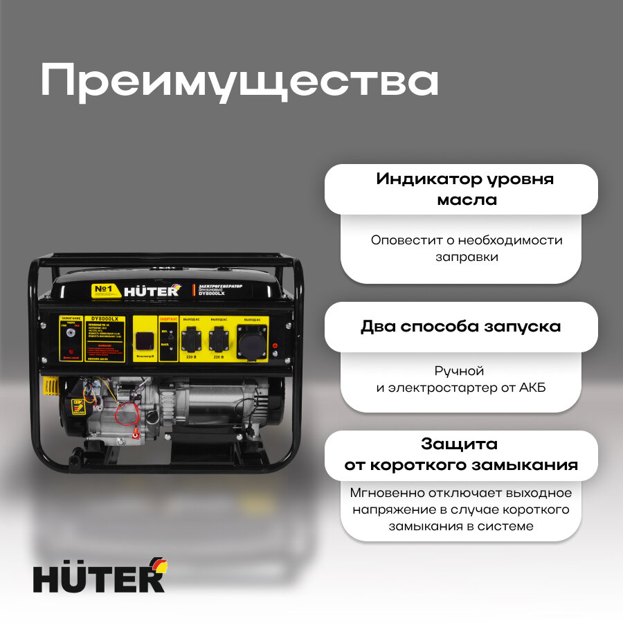 СохранитьЭлектрогенератор DY8000LX Huter интересное: