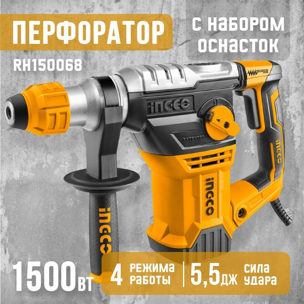 Перфоратор INGCO RH150068 1500Вт 5.5 Дж