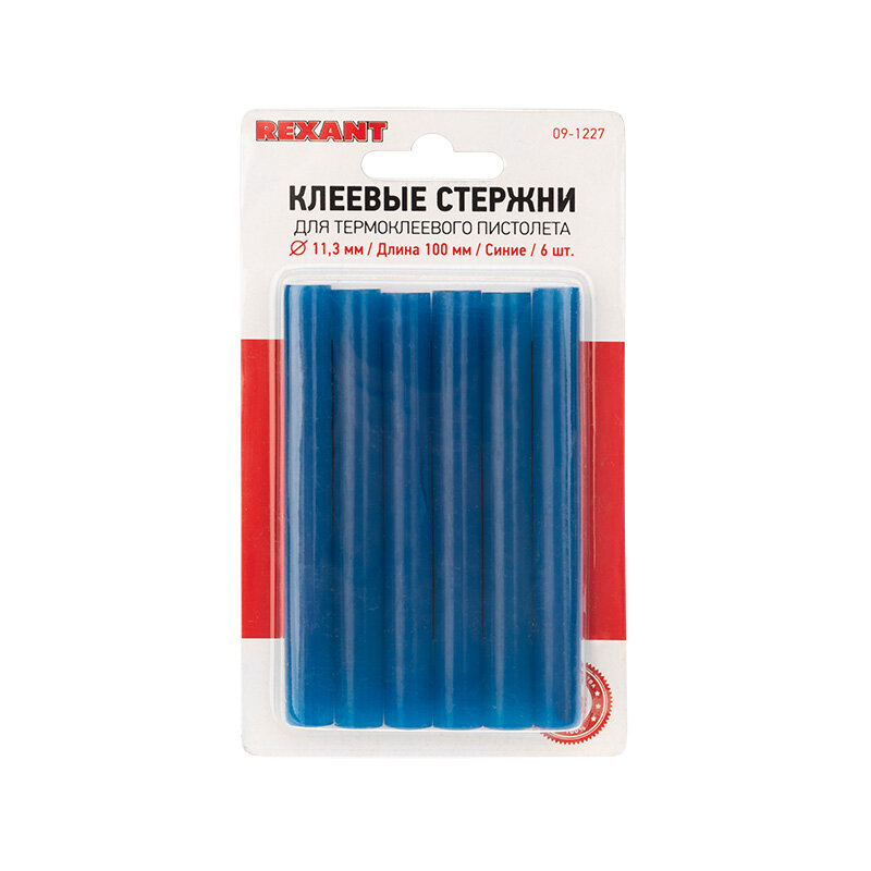 Стержни клеевые Ø11мм, 100мм, синие (6 шт/уп), блистер REXANT 1 упак арт. 09-1227