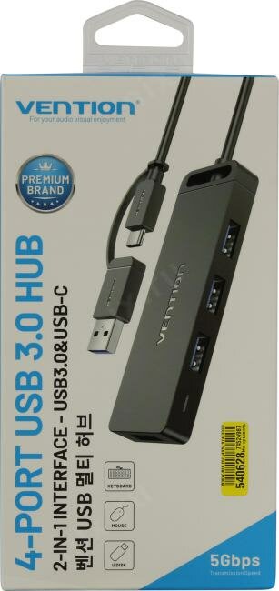 USB HUB 2-в-1 на 4 порта OTG USB-C/USB 3.0 Vention длина шнура 0.15 метра, компактный мульти-разветвитель,арт. CHTBB
