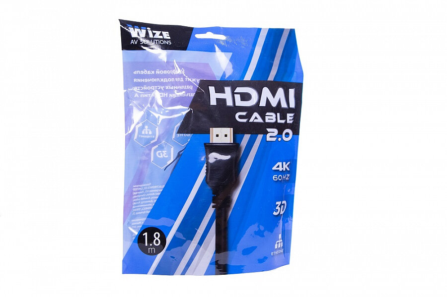 Кабель Wize HDMI 1.8 м, v.2.0, 19M/19M, позол.разъемы, экран, черный, пакет