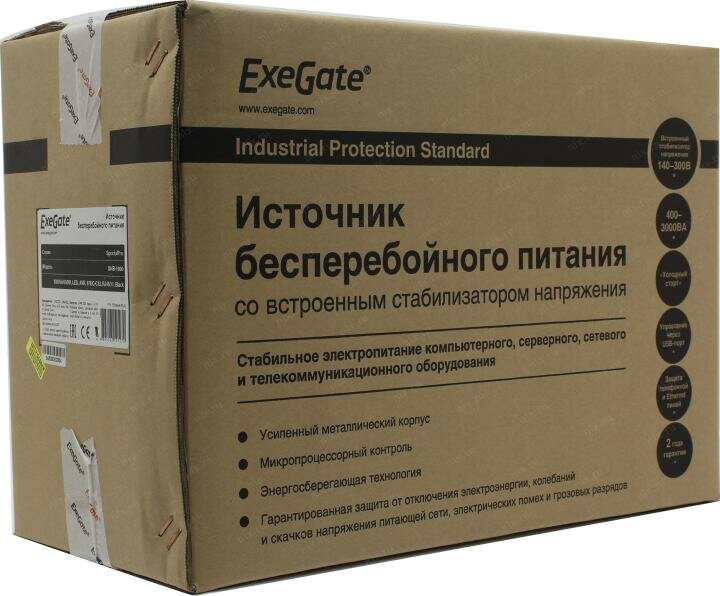 ИБП ExeGate SpecialPro UNB-1000.LED.AVR.6C13.RJ.USB <1000VA/650W, LED, AVR,6*C13, RJ45/11,USB, металлический корпус, Black>