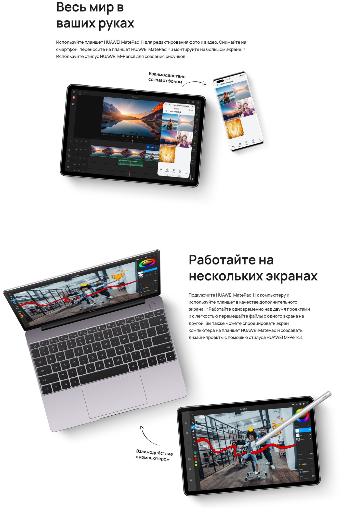 СохранитьПланшет HUAWEI MatePad 11, 6 ГБ/64 ГБ, Wi-Fi, серый матовый интересное: