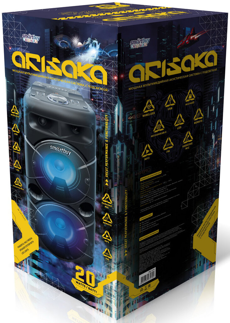 Портативная колонка ARISAKA, 20 Вт, Bluetooth, EQ, MP3-FM, микрофон, SmartBuy