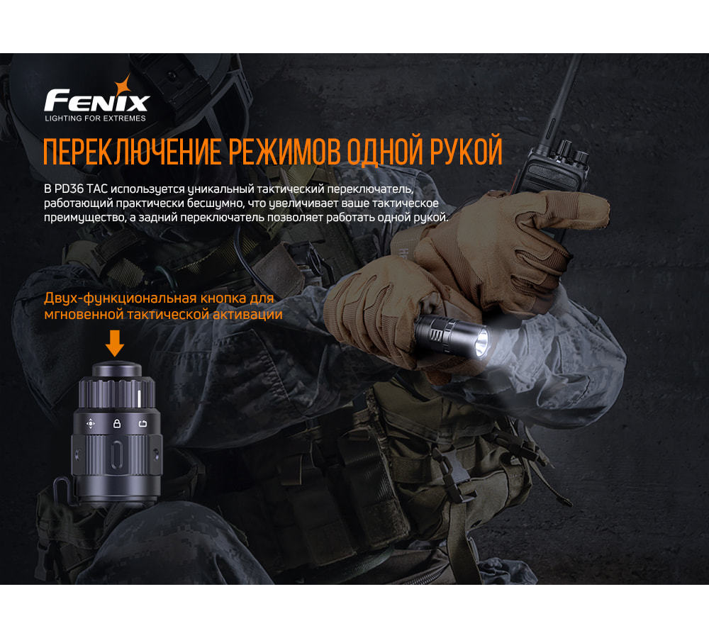Фонарь Fenix PD36 TAC интересное:
