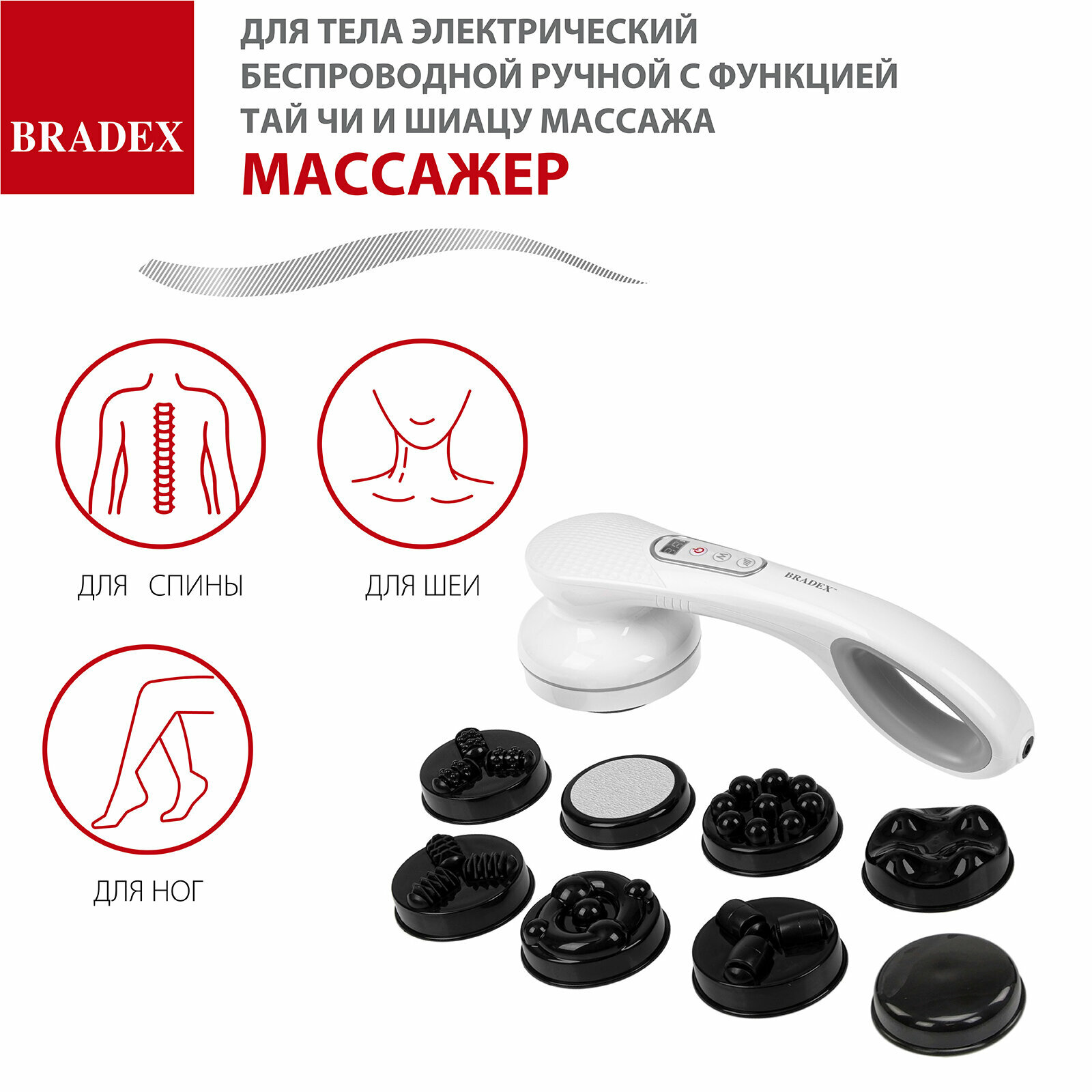 BRADEX Массажёр для тела беспроводной с функцией Тай Чи и Шиацу массажа, BRADEX