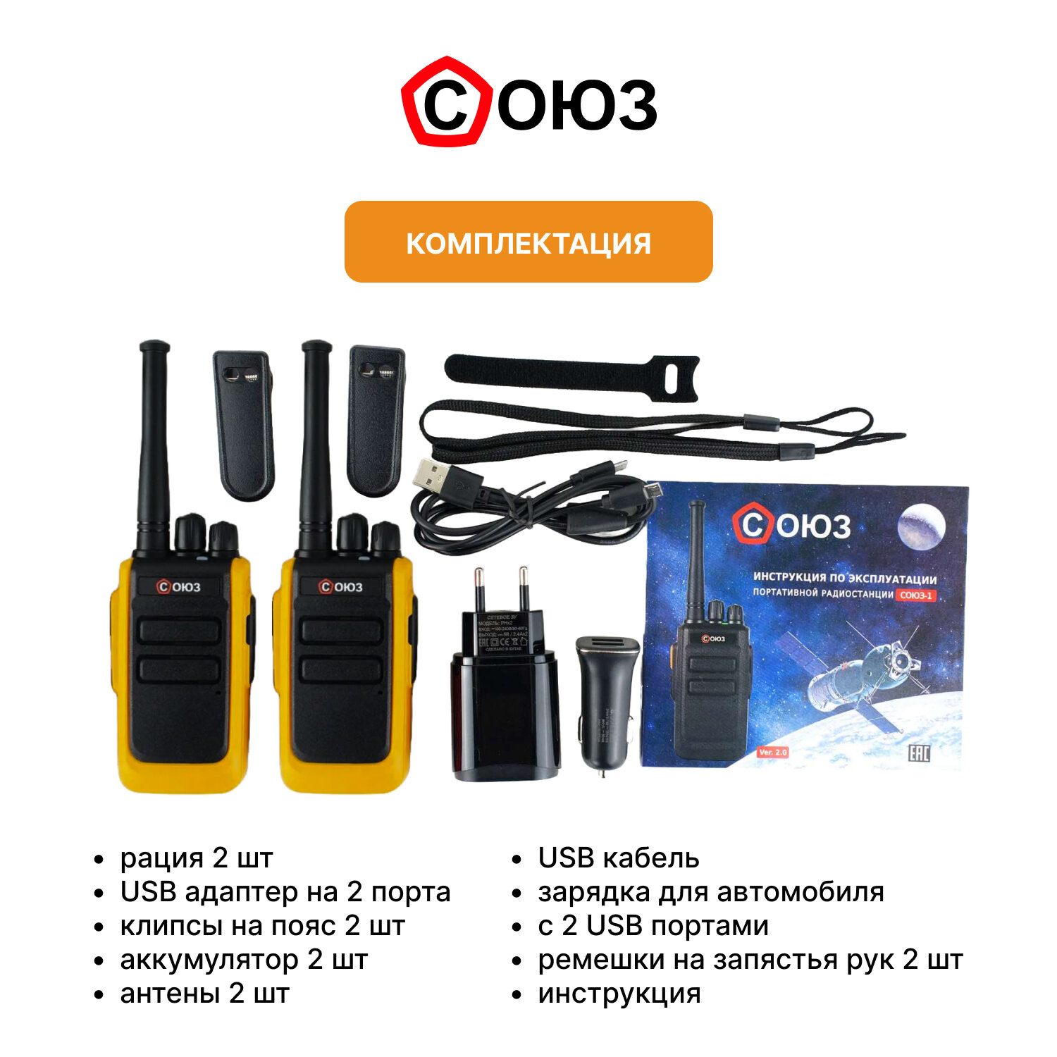СохранитьКомплект раций Союз А1x2. Портативные рации Союз А1x2 оранжевый интересное: