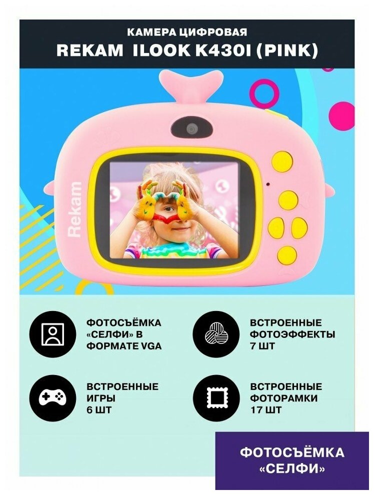 Детская цифровая фотокамера Rekam iLook K430i розовая, 6 встроенных игр