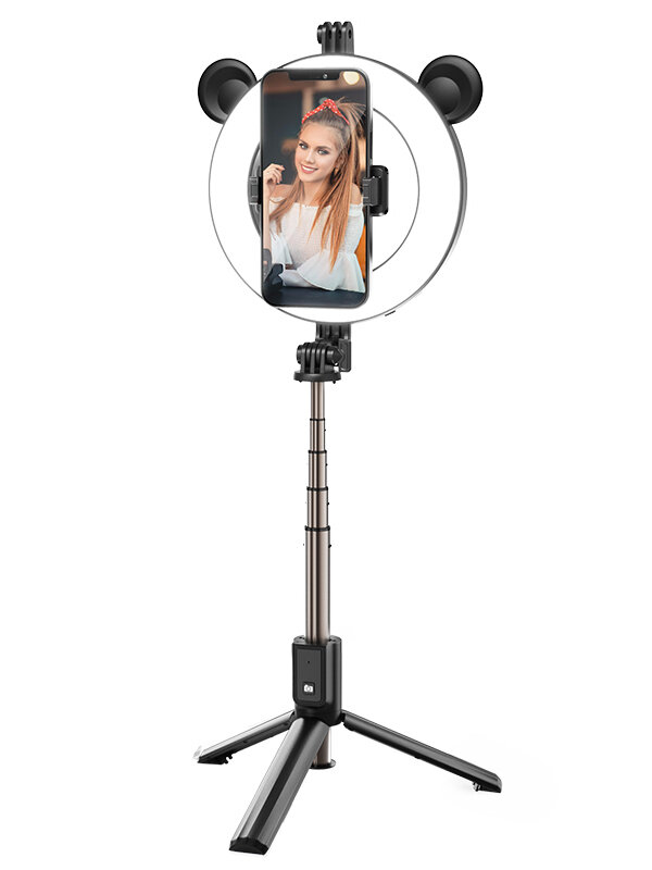 Лампа для селфи Borofone, PerfectPic BY6, Bluetooth, трипод, с пультом управления, LED подсветка, цвет: чёрный