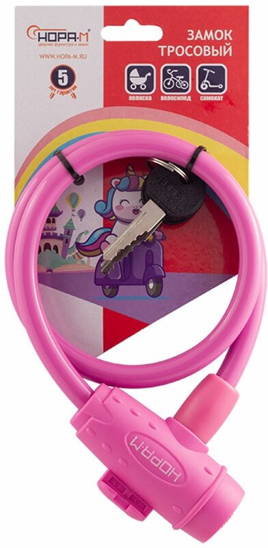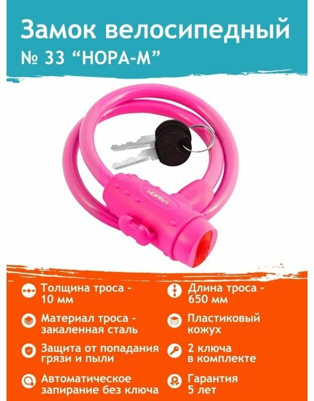 Замок велосипедный Нора-М №33 10x650 (противоугонный, стальной трос 10мм, длина 65см) - Розовый интересное: