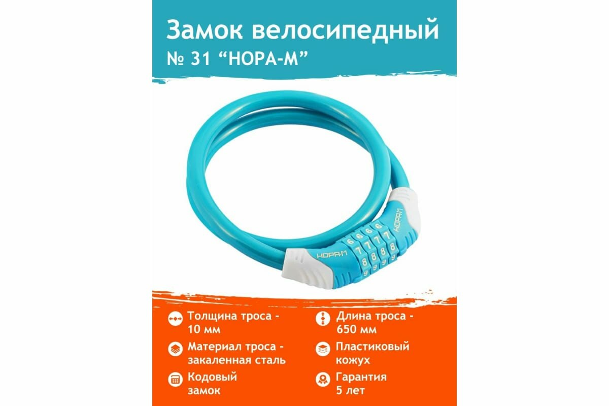 Купить Замок велосипедный кодовый Нора-М №31 10x650 (противоугонный, стальной трос 10мм, длина 65см) - Голубой