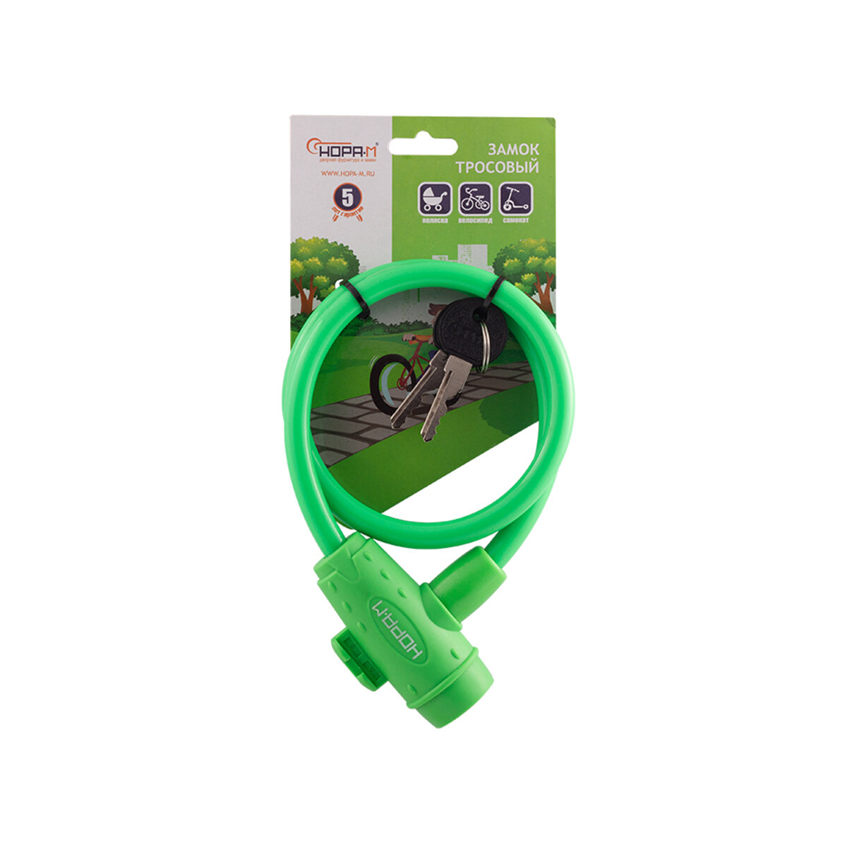 Замок велосипедный Нора-М №33 10x650 (противоугонный, стальной трос 10мм, длина 65см) - Зеленый интересное: