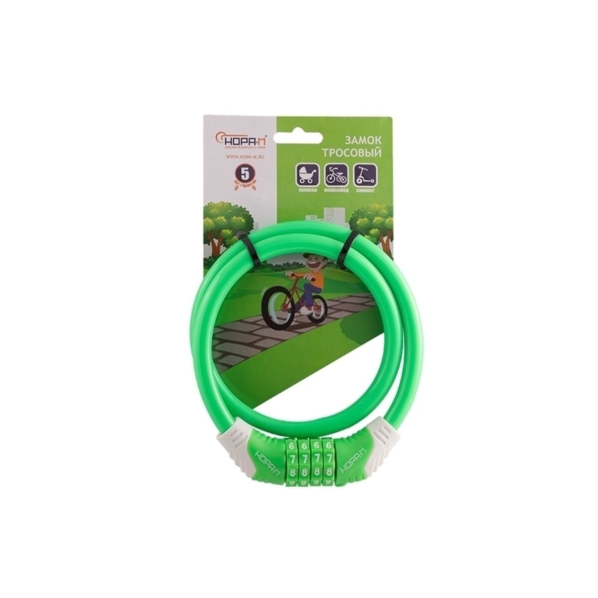 Купить Замок велосипедный кодовый Нора-М №31 10x650 (противоугонный, стальной трос 10мм, длина 65см) - Зеленый