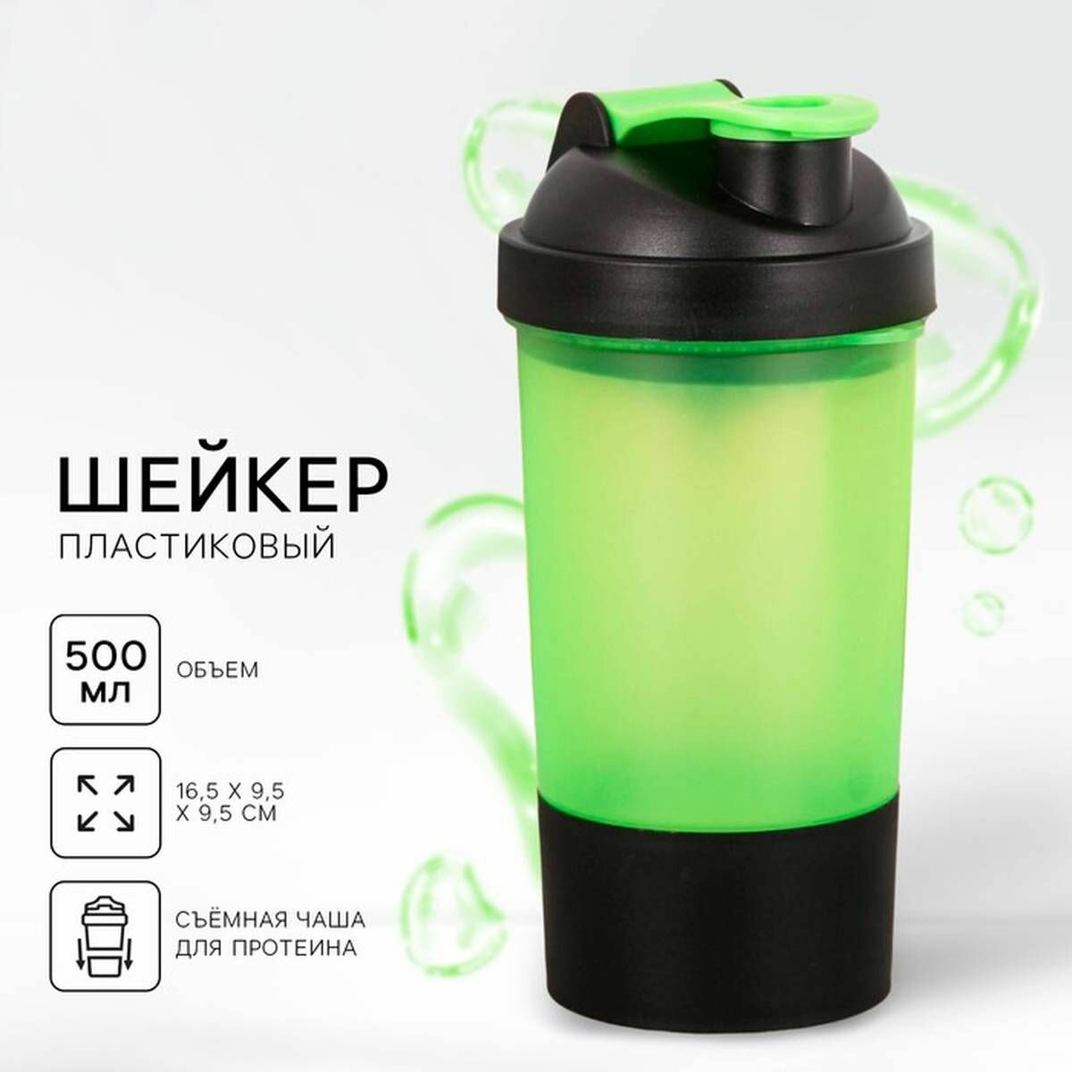 Шейкер спортивный с чашей под протеин, зелёный, 500 мл (арт. 3794664)