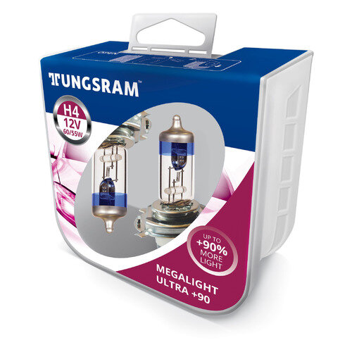 TUNGSRAM Лампы галогенные TUNGSRAM MEGALIGHT ULTRA+90 12V H4 60/55W 2 шт 50440SXU B2